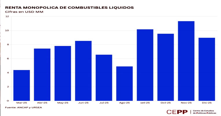 El contraste con el período previo es uno de los ejes centrales del informe. Según el CEPP, entre 2021 y febrero de 2025, bajo el esquema aprobado en la Ley de Urgente Consideración, los consumidores ahorraron alrededor de US$ 450 millones, mientras que Ancap mostró resultados positivos, salvo en los períodos de parada de la refinería de La Teja.