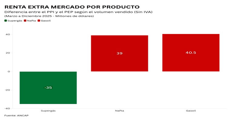 El informe al cual pudo acceder Surtidores estima que entre marzo y diciembre de 2025 los consumidores uruguayos pagaron cerca de US$ 89 millones por encima del Precio de Paridad de Importación en la nafta Súper 95 y el gasoil 50S. Una brecha que, según el organismo, no responde a factores operativos de Ancap, sino a una decisión política de modificar el ancla de precios, en un contexto de restricción fiscal y redefinición de prioridades presupuestales.